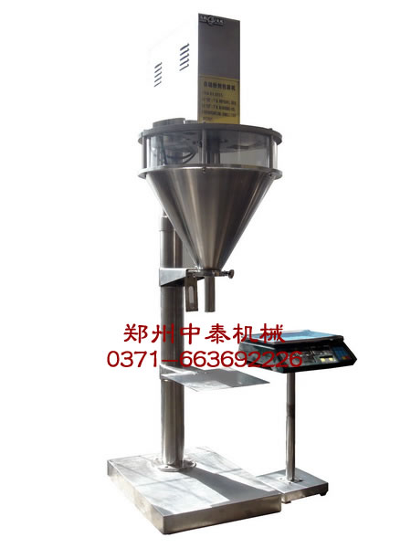 2、该自动定量包装机适合袋类、罐类、瓶类等各种包装容器粉剂定量包装;