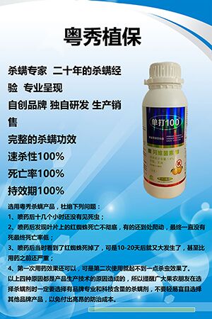 单打100杀螨剂为什么效果这么好?在目前使用的杀螨剂中,能兼防成螨和卵的药剂很少,单一的杀螨剂效果不理想,且大部分杀螨剂是感温性农药,温度〉20℃时随温度增高活性增强,但低温时防效很差。如果选药不当,即使重喷效果也差。而我们的单打100杀螨剂是多元复方制剂的产品不存在这样的问题,螨卵兼杀,持效期长,安全性高,对花卉,幼苗等安全,温度对药效影响较小。
