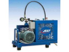 HAT -100 呼吸空气压缩机是一种把压缩气瓶充灌到225 巴或330 巴压力的整套装置。压缩机采用三个汽缸、3级压缩、空冷、往复式活塞压缩机。驱动装置可以采用三相或单相电机。